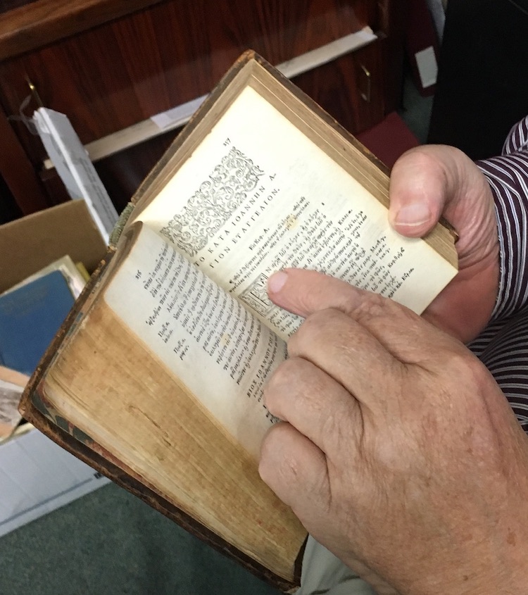 Ever heard of fore-edge painting? I hadn’t until I stumbled onto the Alcuin Scholarly and Rare Books store when I was in Scottsdale, AZ, in February. My friend Bruce and I spent three hours browsing through some really old books, including an 1885 Huckleberry Finn ($15,000) and a Greek New Testament printed in 1533, the same year Martin Luther published A Mighty Fortress is Our God. In addition, there were several 18th and 19th century books with fore-edge paintings. A fore-edge painting is a scene painted on the edges of the pages of a book. When the pages are fanned, a painting appears (check out this 30 second YouTube video).