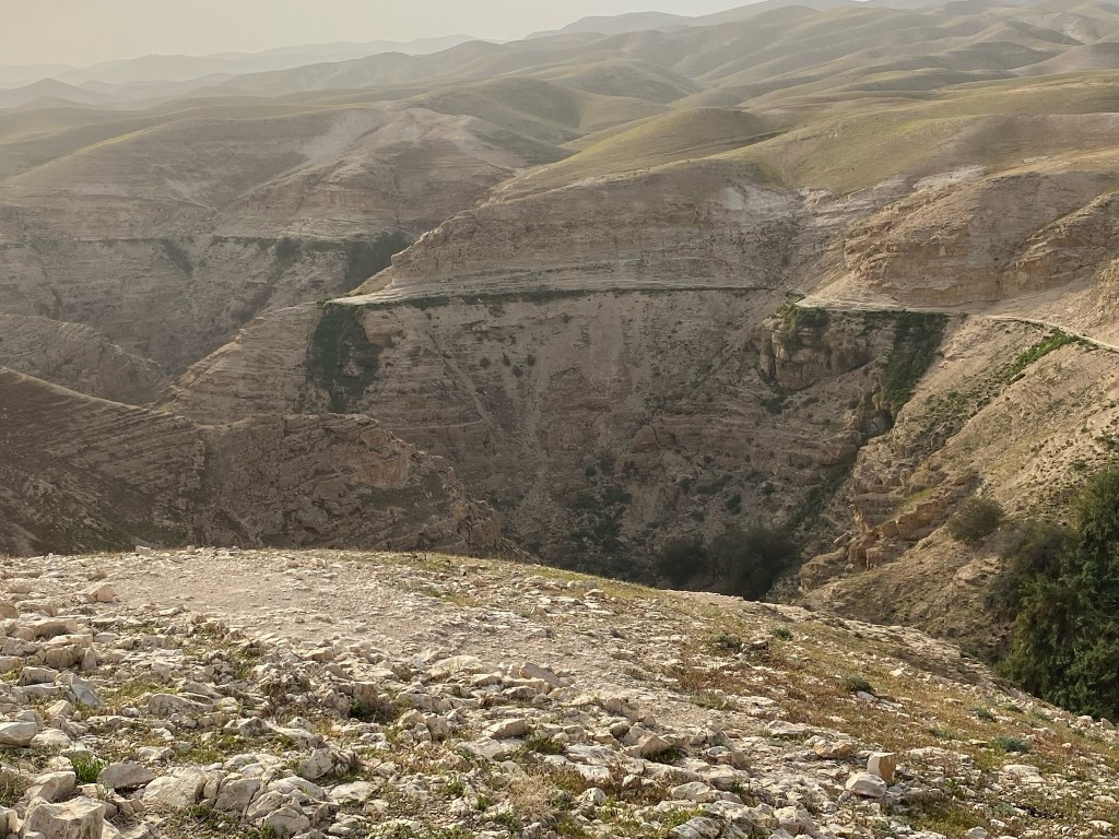 As a Lenten practice this year, I’ve been reading through the Gospels. One does not need to spend a lot of time immersed in the Gospels to realize that Jesus and his disciples did a lot of walking. In addition to their regular Jerusalem treks, they traveled from Capernaum out to the Mediterranean Sea, north to Tyre and Sidon, north to Caesarea Philippi, south to Samaria – to name a few of their journeys. After seeing the very rugged, hilly, and rocky geography and topography of Israel, I’m beginning to realize how much time they spent together “on the road” (or on pilgrimage?) navigating the terrain.