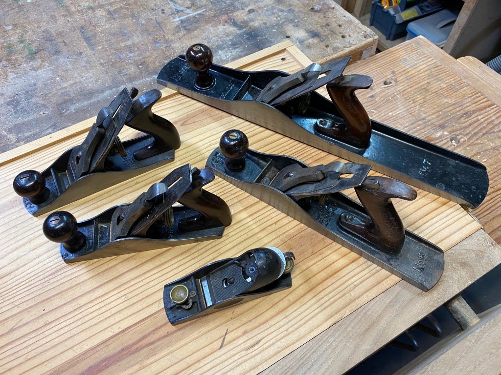 Nate was convinced that if I gave it a chance, I would enjoy woodworking with hand tools. So he located for me some turn of the 20th century, classic Stanley hand planes and showed me how to refurbish and tune them. Flattening the bottoms (soles) and honing the blades (irons) and other parts took time – a LOT of time. But there was something quite satisfying about the restoration process.